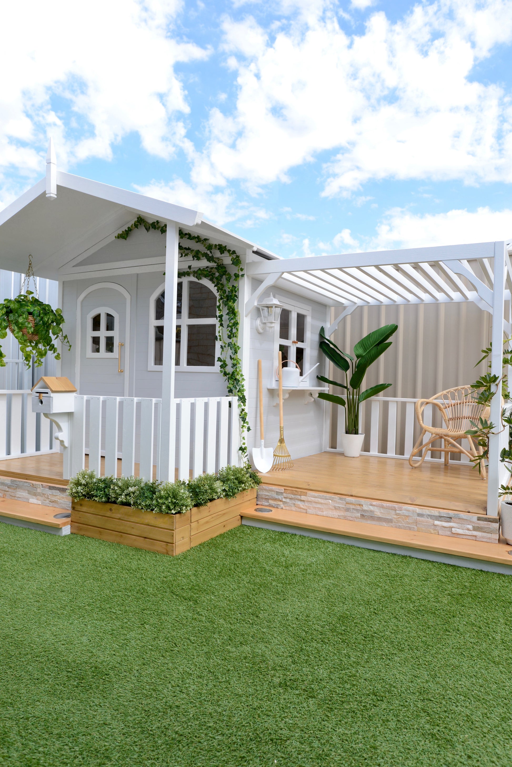 Note: Customer photos have been used in this listing for display purposes and may include accessories and items painted, which are not supplied, or a service provided by Gumnut Kids. Such items but not limited to are the Flower box, Cottage fascia add-on and pergola are not included. CUBBY HOUSE IS SUPPLIED UNPAINTED